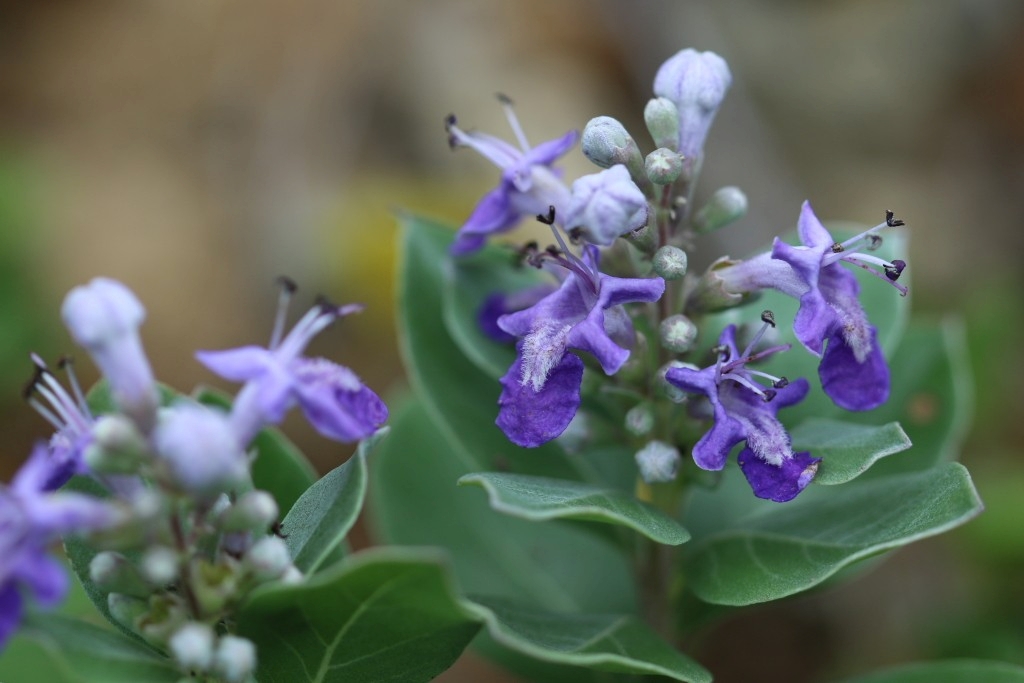 잎사귀가 꽃을 바쳐주는 모습의 순비기나무의 꽃모양이 독특합니다.