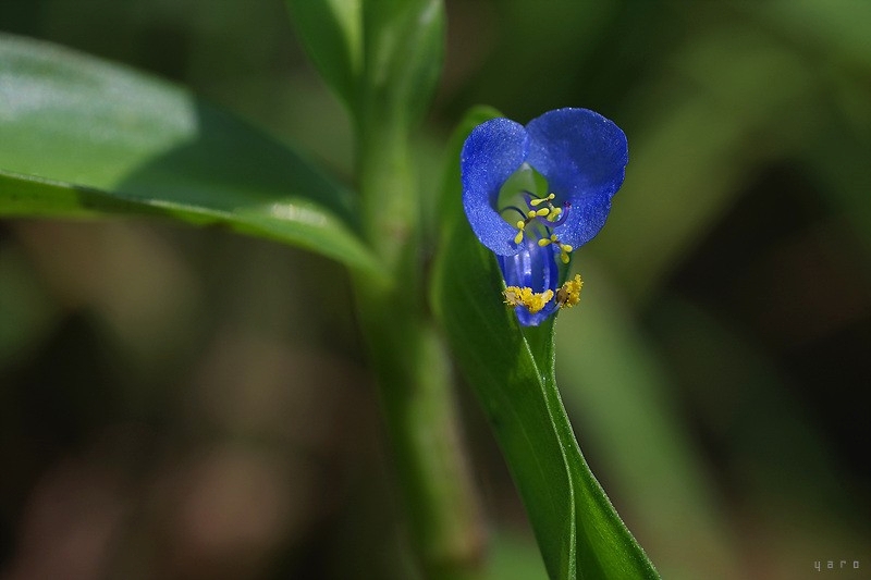 맑은 하늘색의 꽃잎이 3장, 개체가 닭의장풀보다 조금 작은 느낌...