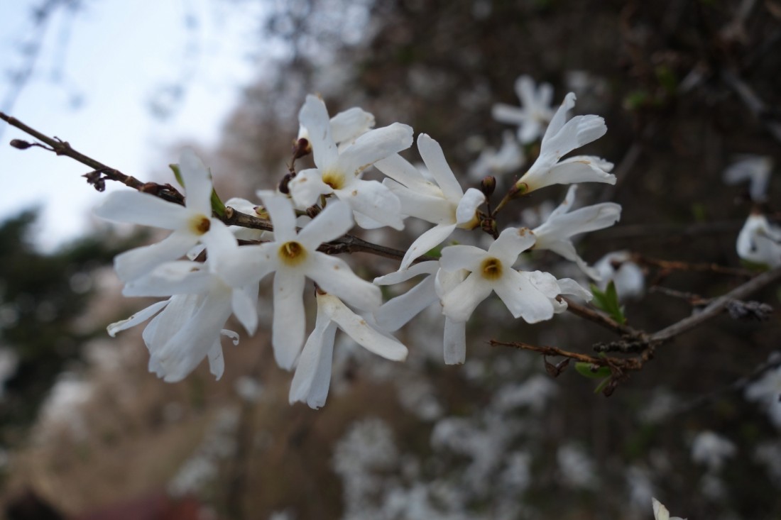 나무 모양이나 꽃모양은 개나리와 같고 크기는 개나리꽃보다 작습니다.