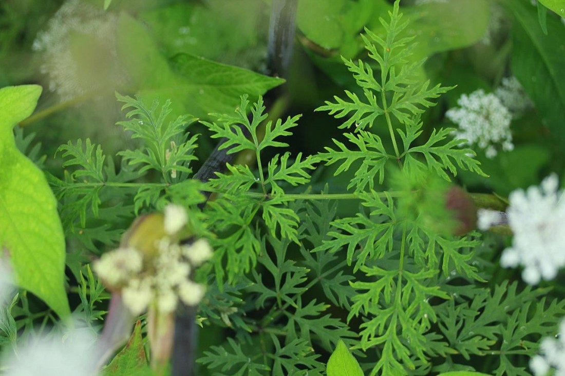 긴 소총포가 선형으로 갈라지기도 하고, 바깥쪽 꽃잎이 큰 산형과의 풀...