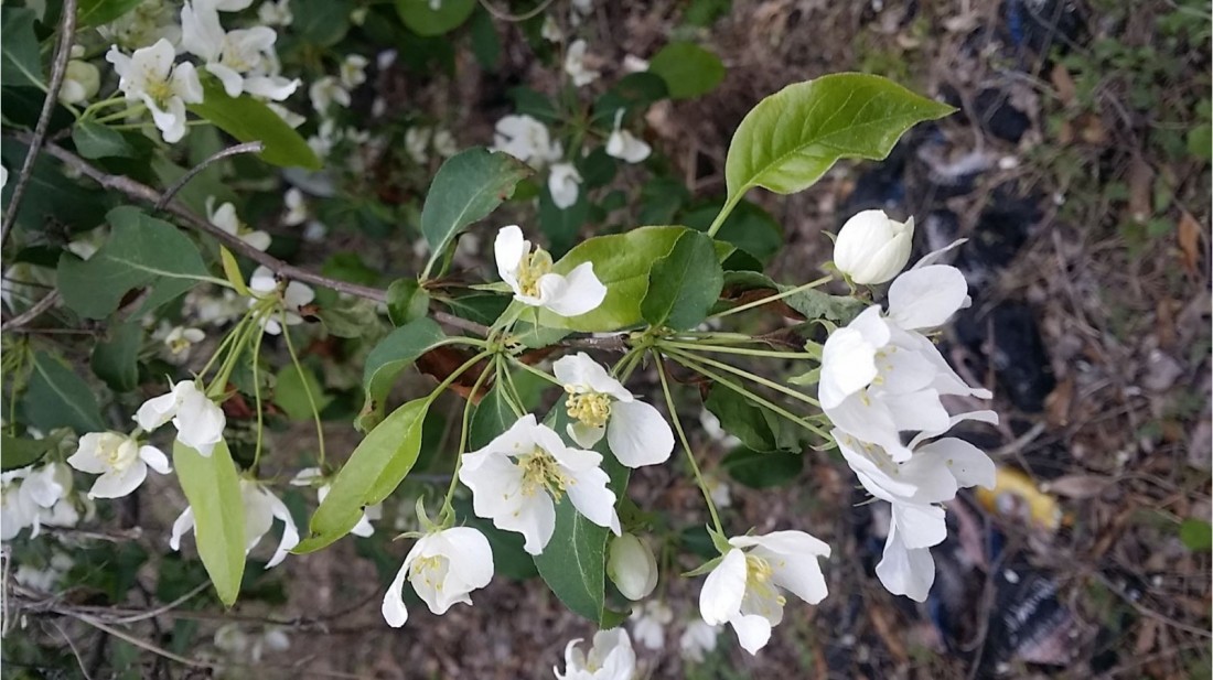 잎에 아주 잔 톱니가 있고 꽃자루에 털이 없는 걸로 봐선 야광나무로 보입니다만...